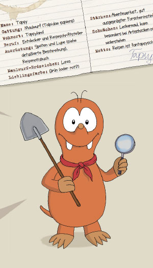 «Er heisst Tapsy, ist ein abenteuerlustiger Maulwurf und wurde als Leitfigur für interaktive Städtereiesen für Familien mit Kindern...»